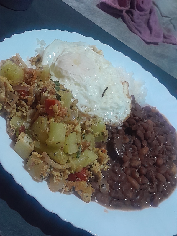 Tirando as batatas e o feijão tá lindo.
