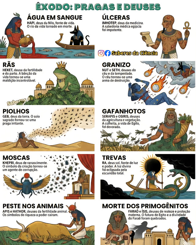 Para os egipcios do tempo antigo os deuses mandavam pragas e hoje vemos muitas pragas que acreditam no Deus único. Gafanhotos e pestes as piores pragas.