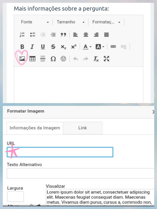 É só clicar no ícone, e depois colocar o link da imagem...