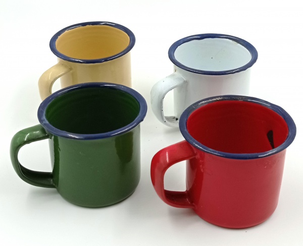 Já tomei café e chá em canecas de aço. Aqui em casa o que mais tem é xícara.