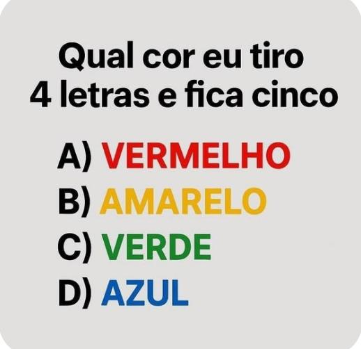 VERDE menos as 4 letras da frente, resta o V que é 5 em algarismo romano...